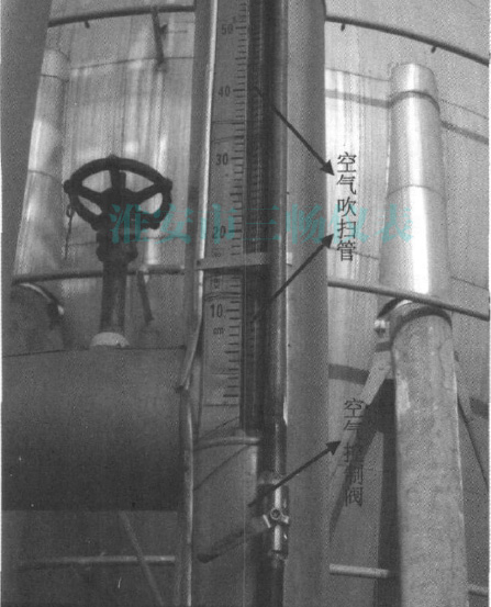 為了保證乙烯球罐安全穩(wěn)定運(yùn)行,投用初期磁翻板液面計(jì)結(jié)冰就很?chē)?yán)重,開(kāi)始以為是由于施工時(shí)保冷材料沒(méi)有安裝好、保冷材料的厚度不夠等原因造成的,因此對(duì)保冷材料全部重新安裝并增加了保冷材料的厚度,但效果不明顯。后又組織崗位操作工對(duì)耐酸堿磁翻板液位計(jì)上的冰定期進(jìn)行人工清理,由于乙烯球罐容積大(1500m³),液位計(jì)長(zhǎng)約12米,清理難度非常大,在清除作業(yè)過(guò)程中涉及高空等危險(xiǎn)作業(yè),增加了員工的工作危險(xiǎn)性和勞動(dòng)強(qiáng)度,而且經(jīng)過(guò)人工清理的液位計(jì)在運(yùn)行3~4小時(shí)后,又開(kāi)始掛霜結(jié)冰,運(yùn)行周期太短。另外每次在清除結(jié)冰的過(guò)程中,都會(huì)對(duì)磁翻板液面計(jì)和閥座有所損傷,*終可導(dǎo)致磁翻板液面計(jì)損壞報(bào)廢。后來(lái)又嘗試切斷液面計(jì)根部閥切斷,采用自然化冰的方式來(lái)清除掛冰,這樣雖然減小了操作工的勞動(dòng)強(qiáng)度,但這種辦法除冰時(shí)間太長(zhǎng),對(duì)安全生產(chǎn)不利。為了徹底解決磁翻板掛冰的現(xiàn)象,經(jīng)過(guò)反復(fù)論證,技術(shù)人員提出用工廠空氣進(jìn)行吹掃的方案并在其中一具乙烯球罐上進(jìn)行試驗(yàn)。通過(guò)試驗(yàn)發(fā)現(xiàn)用工廠空氣連續(xù)吹掃掛冰的液位計(jì),基本能夠徹底解決耐酸堿磁翻板液位計(jì)掛冰。