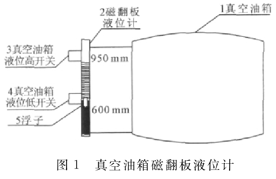 4月18日24:00,真空油箱油位低信號發(fā)出,密封油真空泵磁翻板無液位顯示,檢查確認(rèn)浮子已在液位筒底部。此時(shí)真空油箱實(shí)際油位950mm。