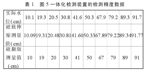 我們把圖5所示的一體化檢測裝置進行了水位檢測實驗,其檢測結(jié)果與實際水位值見表1。