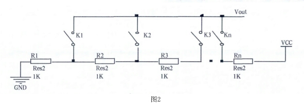 傳感器部分由串聯(lián)的電阻構(gòu)成,電阻一端接電源。另一點(diǎn)接地,每個(gè)電阻分得的電壓是