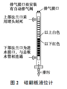 由于在丙酸液位計的進水接口法蘭處安裝有閥門, 在平時不需要水泵水輪機排水檢修時, 該閥門處于關(guān)閉狀態(tài), 必要時可以通過裝置底部的排污閥門把液位計主導(dǎo)管內(nèi)的水排空。