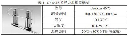 GeoKon 4675 型靜力水準(zhǔn)儀是一種高精密液位系統(tǒng),該系統(tǒng)設(shè)計(jì)是 用于測量多點(diǎn)相對(duì)沉降的系統(tǒng)。在使用中,一系列的傳感器容器均采用PVC 液管聯(lián)接,每一容器的液位由一精密振弦式力傳感器測出,該傳感 器內(nèi)有一個(gè)自由懸重,一旦液位發(fā)生變化,懸重的懸應(yīng)浮力即被傳感器感,精確測出小至 0.025mm 的垂直變化。在多點(diǎn)系統(tǒng)中,所有傳感器的垂 直位移均是相對(duì)于其中的一點(diǎn),該點(diǎn)的垂直位移是相對(duì)恒定的或者可用其它人工觀測手段準(zhǔn)來確定。