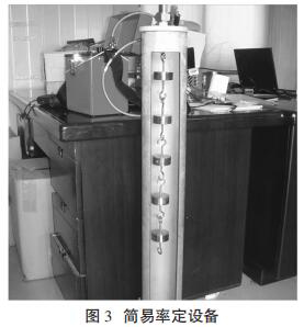 采用一根鋼制桿下端連接一個(gè)砝碼,砝碼重量必須為 300g,每個(gè)砝 碼采用懸掛式方式加入,每增加一個(gè)砝碼,讀數(shù)一次。簡易率定法速度很 慢,效率*低,無法適用于大批量設(shè)備的率定。