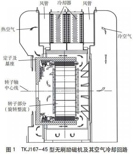 大型核電機組的勵磁機一般采用循環(huán)空氣冷卻,冷卻空氣在冷卻器和勵磁機之間進行強迫循環(huán),在經(jīng)過勵磁機和冷卻器時發(fā)生熱交換,將勵磁機正常運行過程中產(chǎn)生的熱量*終傳遞給冷卻器內(nèi)部銅管里的冷卻水。