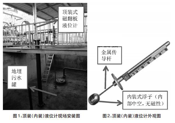 該區(qū)塊集氣站使用的是地埋污水罐,主要作用是對集氣站內(nèi)生產(chǎn)污水進(jìn)行沉降。在運(yùn)行過程中,冷凝水液位計故障導(dǎo)致顯示數(shù)據(jù)不準(zhǔn),一方面對污水液位情況掌握不準(zhǔn)確,另一方面會出現(xiàn)不安全因素,甚至安全事故。該井區(qū)地埋污水罐使用的液位計為頂裝式磁翻板(磁浮子)液位計,根據(jù)液位計磁性材質(zhì)所在位置的不同冷凝水液位計也稱為內(nèi)裝式磁翻板液位計。