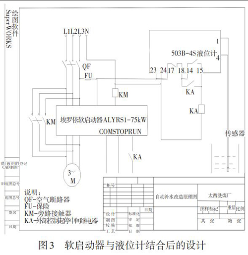 為了降低崗位司機(jī)的勞動強(qiáng)度,選煤廠利用水源井原有的埃羅依軟啟動器和XMTA-503B-4S液位計,通過技術(shù)改造,實現(xiàn)了無人開啟、停止自動化和自動上水,優(yōu)化了工藝。