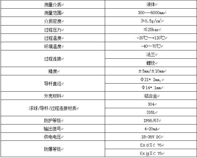 Float-11不銹鋼浮球液位計技術參數(shù)表